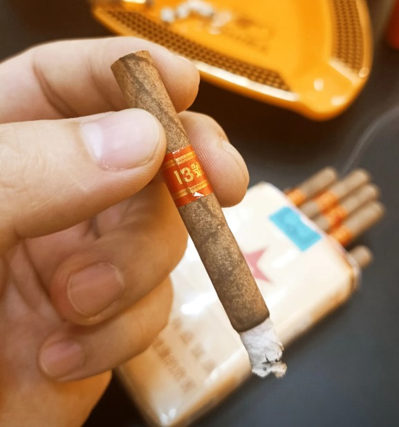 燃烧稳定性在60%湿度环境下表现良好,烟灰呈现分层灰白色。虽然定位为中型尺寸雪茄,实际品吸时长可达100分钟。