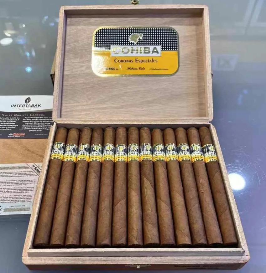 高希霸特冠雪茄是一款来自古巴的手工雪茄,每盒25支装,价格为14700元一盒。它的尺寸为长度152mm,环径38,燃烧时长约40-55分钟,味道属于中等浓郁度。