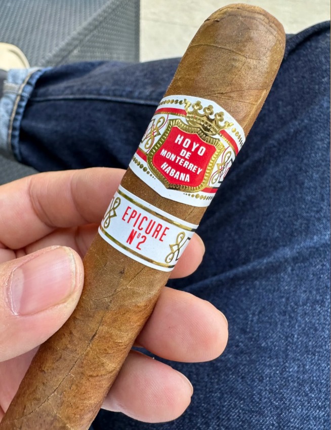 好友蒙特雷3号雪茄为鱼雷造型(Figurado),茄衣呈深棕色,油润光滑,叶脉平整,茄帽为传统三层结构。包装采用侧推盖木盒,盒身印有品牌红黄交叉剑标志及“Epicure No.3”字样,设计简洁优雅。点燃后燃烧均匀,烟灰紧实呈灰白色,偶尔出现轻微斜烧需补火。