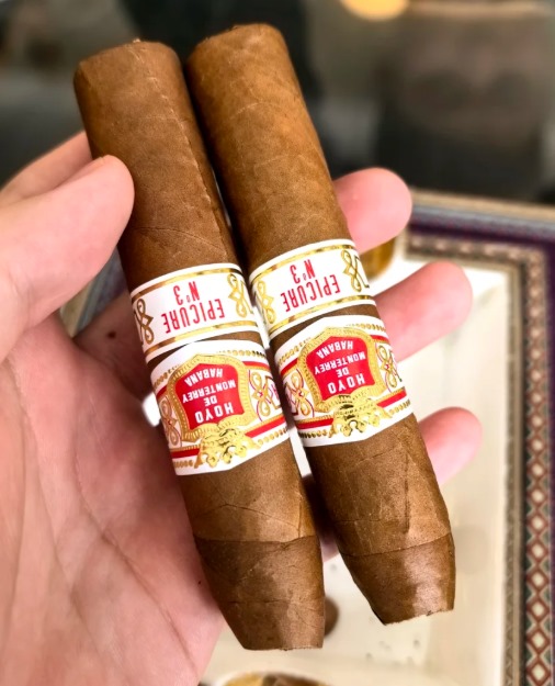 好友蒙特雷3号(Hoyo de Monterrey Epicure No.3)于2022年发布,2023年9月正式上市,是好友Epicure系列首款鱼雷造型雪茄。长度125mm,环径54,浓郁度为中等偏下。每盒规格为10支,市场价格约为7500元/盒。该款雪茄定位年轻及进阶茄客,以奶香为主调,整体风味温和顺滑,适合搭配咖啡或淡酒品吸。