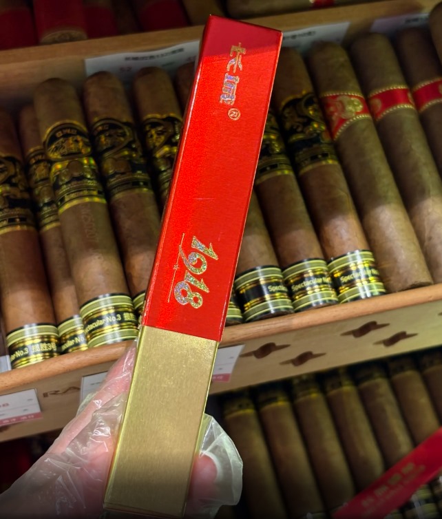 这款雪茄的茄衣是深褐色油亮质感,环径 66,长度 152mm。外包装是红色木质礼盒,印着 1918 伟大胜利纪念字样,单支雪茄配有独立防潮纸管。