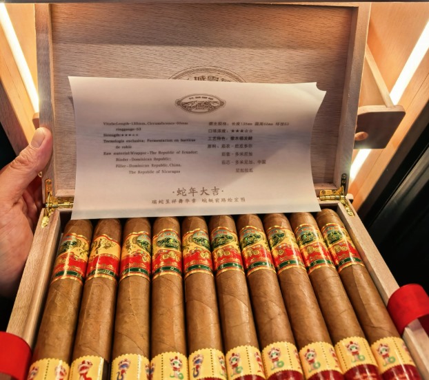 实际体验时,雪茄点燃后烟气柔和,米香和木香先行,逐渐过渡到坚果与焦糖甜感,中段风味变化较为突出。后段咖啡和焦甜气息加重,整体余味持久。虽然尾段可能出现皮革和轻微苦味,但整体表现值得再次购买,特别适合希望尝试宽环径国产雪茄的茄友。
