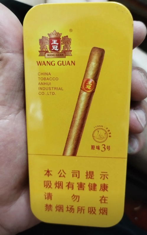 这款王冠原味 3 号铁盒雪茄是由安徽中烟生产的。它有纸盒 5 支装与铁盒 10 支装两种包装形式,铁盒款的建议零售价是 40 元一包。