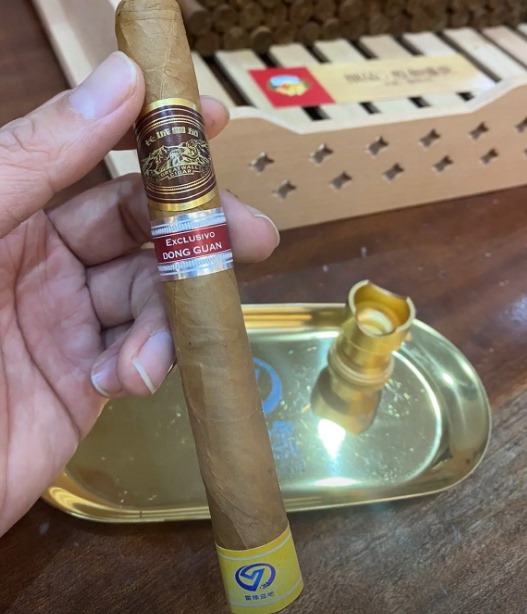 这款雪茄环径 52,长度 140mm,能燃烧约 60 - 80 分钟。它用印度尼西亚褐青色茄衣,同产地茄套包裹混合烟叶芯材,靠传统卷制工艺制成。