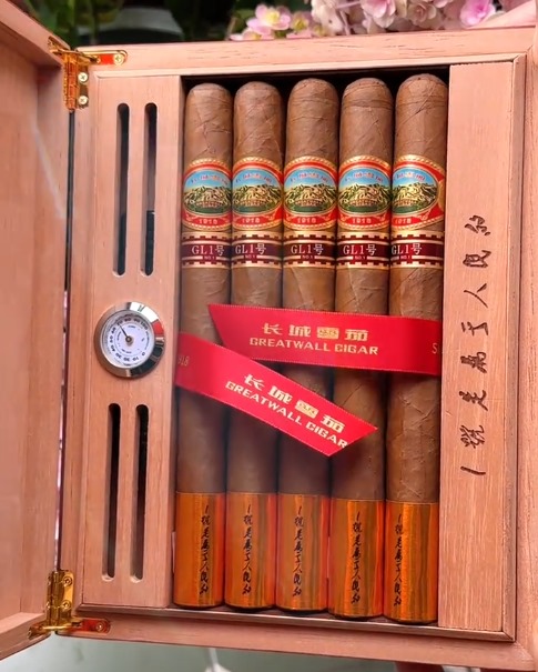 长城骑士1号原味雪茄的茄衣是褐青色,采用预切口设计且没有茄帽结构。燃烧端是开放式宽脚造型,烟支比迷你系列更粗长。它特殊的纸茄套工艺已经沿用15年,通过烟叶纸包裹碎芯料提升了生产效率。