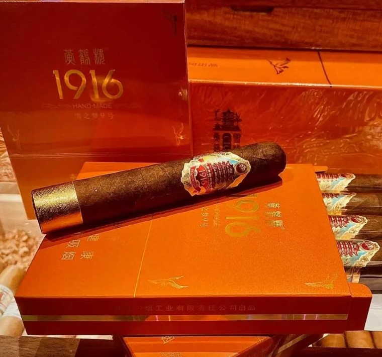 黄鹤楼雪之梦9号雪茄,茄衣选用美国康涅狄格烟叶。其茄体采用独立玻璃纸密封包装,双环标结构由主商标和金色尾标组成,包装盒是橘色基底配仙鹤图腾。