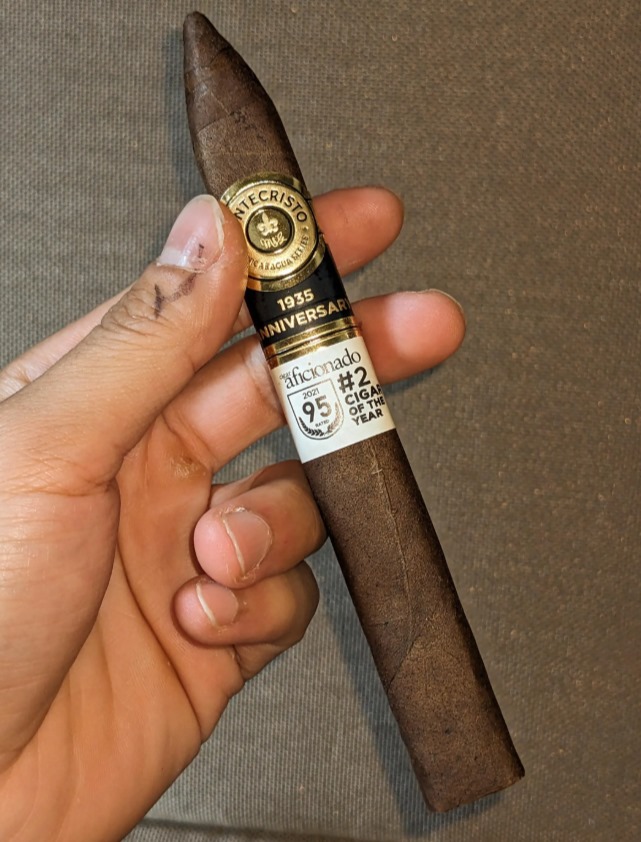 蒙特克里斯托4号雪茄的茄衣是古巴烟叶特有的棕褐色,叶脉分布均匀。它采用三层式卷制结构,烟脚切口平整,触感紧实度适中。燃烧端烟灰呈层状堆积,持灰能力可达2.5厘米以上。