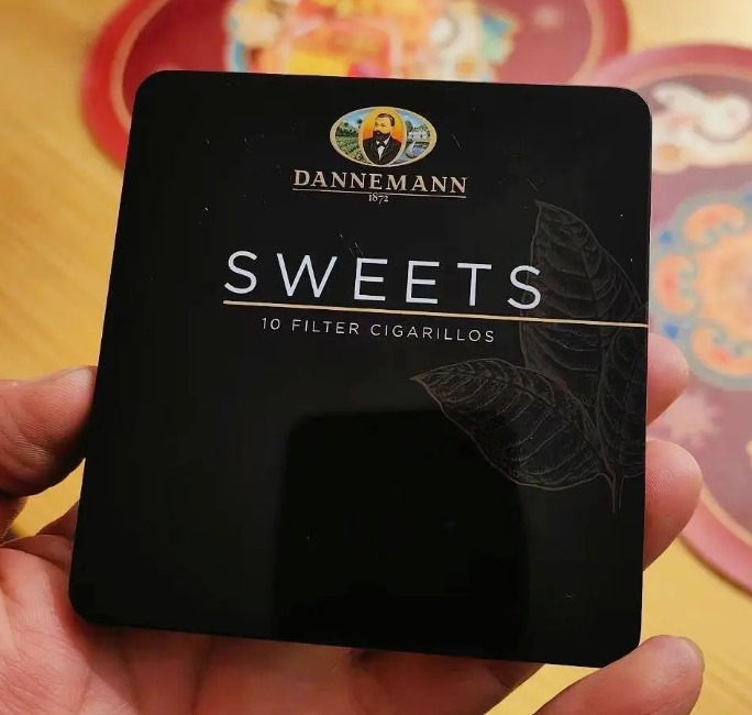 瑞士丹纳曼公司1867年创立,以巴西和苏门答腊烟叶为原料开发雪茄产品。这款丹纳曼甜干邑小雪茄采用金属盒包装,一盒有10支,每支雪茄是128mm的迷你尺寸,环径24,属于中等浓度,市场售价420元一盒。
