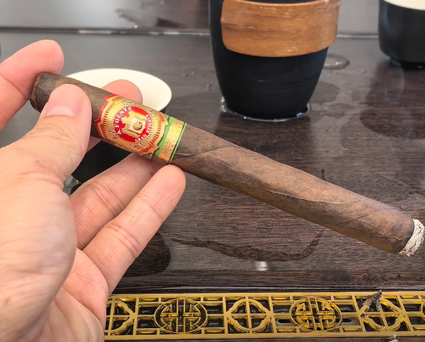 阿图罗·富恩特畅销小说雪茄因鱼雷造型,初始吸阻偏紧,随着燃烧面扩大逐渐改善。燃烧线初期略有偏移,中段后趋于稳定。茄灰层次分明,持灰能力中等,末段环径收窄时需适当放缓抽吸节奏。喀麦隆茄衣释放的果木香贯穿始终,新到货雪茄建议陈化5 - 6个月。