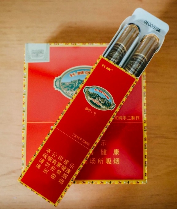 长城盛世5号采用红黄配色硬质纸盒,透明管封装保证11.3%含水率。燃烧速度偏快,建议搭配白水饮用提升品吸体验。