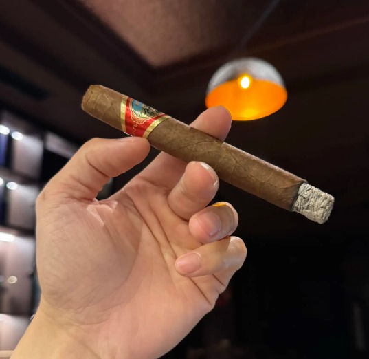 长城盛世5号燃烧稳定,烟雾量适中,适合新手与日常爱好者。整体风味偏淡,缺少复杂度,但价格亲民,作为国产雪茄中规中矩的代表,它不会劝退新手,经过适当养护后木香与坚果香气会有所提升。