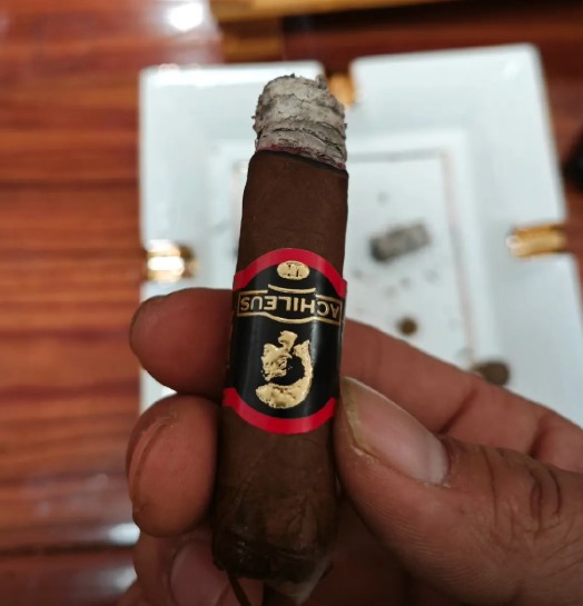 泰山战神2号雪茄的抽吸体验出色,吸阻通畅,燃烧稳定,即便连续大口抽吸,燃烧端也能保持稳定。烟雾细腻,香气浓郁且稳定,从前段到后段风味变化明显且层次丰富,强度和浓郁度适中,适合慢慢品吸。整体给人一种“铁汉柔情”的反差感,虽名为“战神”,却有着柔和细腻的口感。