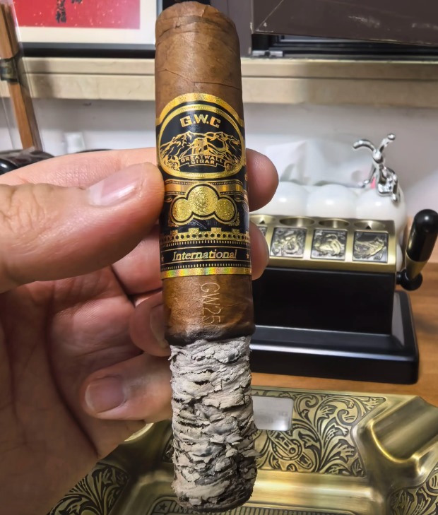 进入中段,檀木味渐浓,焦糖奶油裹着雪松木与皮革香,刺激感下降。吃味柔和,烟气细腻,燃烧稳定烟灰紧实,不用补火。