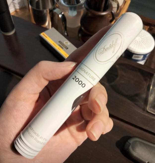 今天聊聊大卫杜夫Signature 2000,单支价格约150元。它是品牌的经典款,用的是Corona尺寸(长129mm,环径43),风味是温和的奶油、雪松和烤杏仁路线。市面上主要有木盒20支铝管装和纸盒25支装两种。