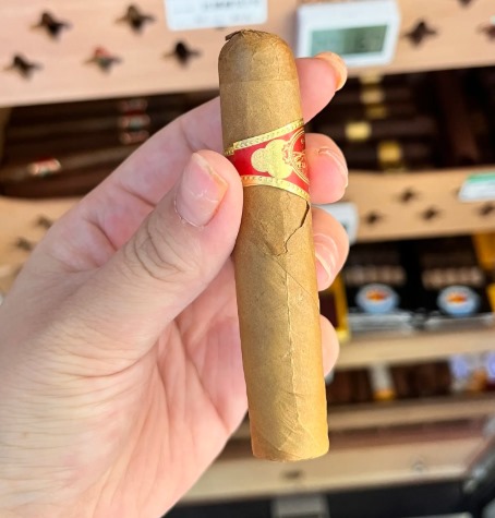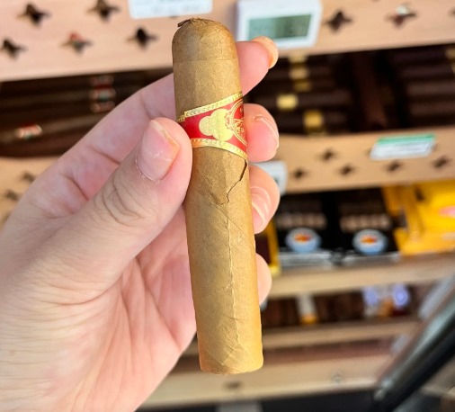 2025年新版铁盒采用浮雕烫金工艺,LOGO带UV光变效果,倾斜观察呈红色渐变,盒内配湿度调节片。茄衣呈琥珀色,油润度提升,叶脉细腻。茄帽采用改良式“黄金三角”剪裁,尾部保留“小辫子”防伪标识,并内置RFID芯片溯源。