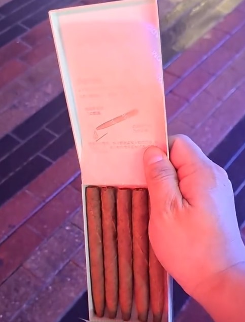 单支雪茄长度106mm,环径40mm,茄体呈深褐色。茄衣选用优质烟叶,表面叶脉清晰还带点油性。茄帽圆润,茄脚稍细,结构紧实均匀,点燃前能闻到淡淡的烟草香和木香。烟支末端没有滤嘴,保留传统雪茄风格,抽起来烟气通透。