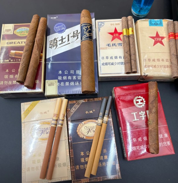 香烟就标准化了,约84mm长,带黄色过滤嘴,包装多样但外观统一。相比之下,香烟更便携,但雪茄的造型更显独特。
