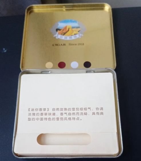 长城迷你香草雪茄产自中国四川什邡,长度75mm,环径25,单盒10支,参考零售价25元,整条(10盒)售价约250元。属于手工雪茄类型,采用金属铁盒包装,便于携带,整体定位亲民,是国内市场常见的入门级雪茄。