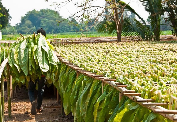 采摘后的烟叶要悬挂在通风木棚中自然风干30-60天,让颜色从青绿色逐渐变成深褐色。这个过程主要是去除叶绿素,降低水分含量。