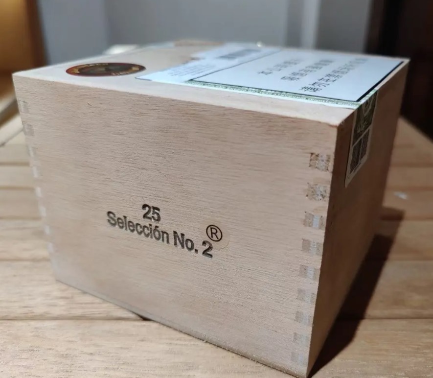 这盒胡安2号(Juan Lopez Seleccion No.2)是去年入手的,盒码OME ABR ’23。半年前抽过一支新鲜的,当时觉得味道平平,有点小失望。这次再试,感觉运气不错,这支的状态完全不一样了。从茄标到配方,都透着一股“老派酷”的味道。咖啡、布里欧修面包和柑橘的香气贯穿始终,结构和燃烧表现都让人印象深刻。虽然复杂度不如一些顶级款,但味道轮廓非常讨喜,抽的时候特别想来杯冰美式搭配。