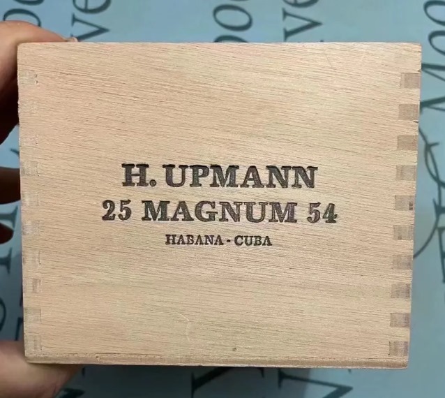 木盒以原木色为主,搭配黑色副色调,盒面印有金色乌普曼品牌标识及"Magnum 54"字样。茄衣为深棕色科罗拉多马杜罗,表面略带油光,叶脉明显但触感光滑。配备双环标,茄体粗壮饱满,卷制紧实,茄帽采用三重封顶工艺。