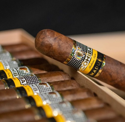 高希霸 Maduro 5 Mágicos 雪茄产自古巴,于2007年随 Maduro 5 系列推出。该系列最大的特色是茄衣使用至少五年木桶熟化的烟叶,呈现深色外观,并赋予雪茄更为厚重与持久的口感体验。Mágicos 格式比同系列的 Genios 略短,长度为115毫米,环径为52,整体规格接近罗布图,但风味差异明显。