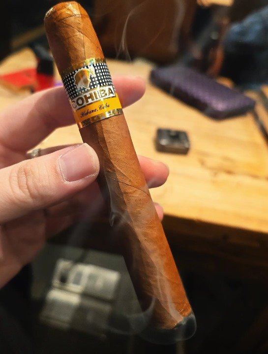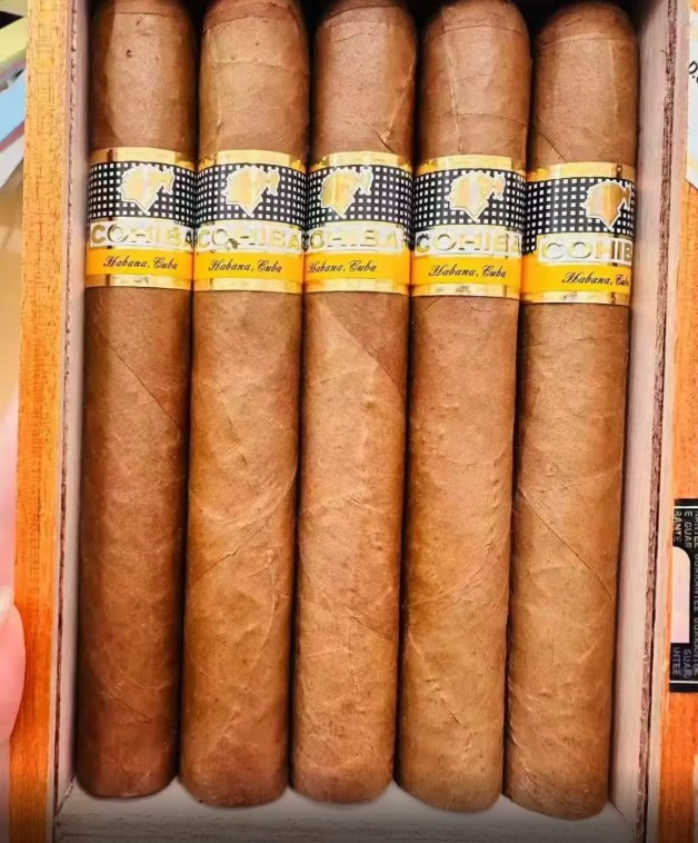 木盒版本采用黄色硬纸盒外套与黑色木质内盒设计,盒面烫金“COHIBA”及“Siglo VI”字样,内衬黑色天鹅绒并配说明卡。25支装雪茄横向排列,单支包裹玻璃纸。铝管版本则以黑黄相间的哑光铝管密封保存,单支更便于携带,15支铝盒装为旅行与收藏常见之选。雪茄茄衣呈深褐或浅红褐色(Colorado Claro),表面油润细腻,三重茄帽工艺精致,手感饱满。