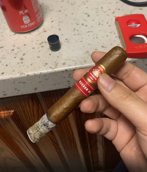 到尾端,皮革和坚果味加重,焦油积累增加,带来浓烈的尼古丁焦糖味。余韵干净带回甘,但抽吸过快时可能有轻微苦味。