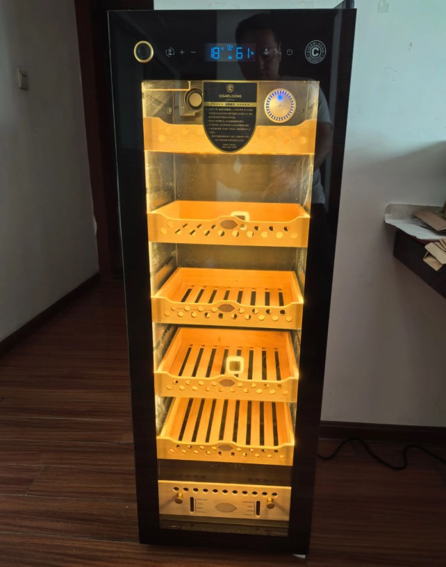 美晶C330A雪茄柜提供高精度控湿,适合长期醇化高端雪茄。采用压缩机直冷和风冷结合,避免冷凝水问题。雪松木内胆提升醇化效果,适合资深藏家或商业使用。