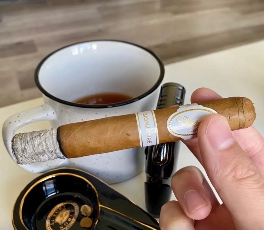点火后烟气柔和,主打雪松和坚果香,带点奶油感。过鼻有轻微白胡椒刺激,但整体顺滑,没有锁喉感。燃烧均匀,配香槟或淡茶不错。