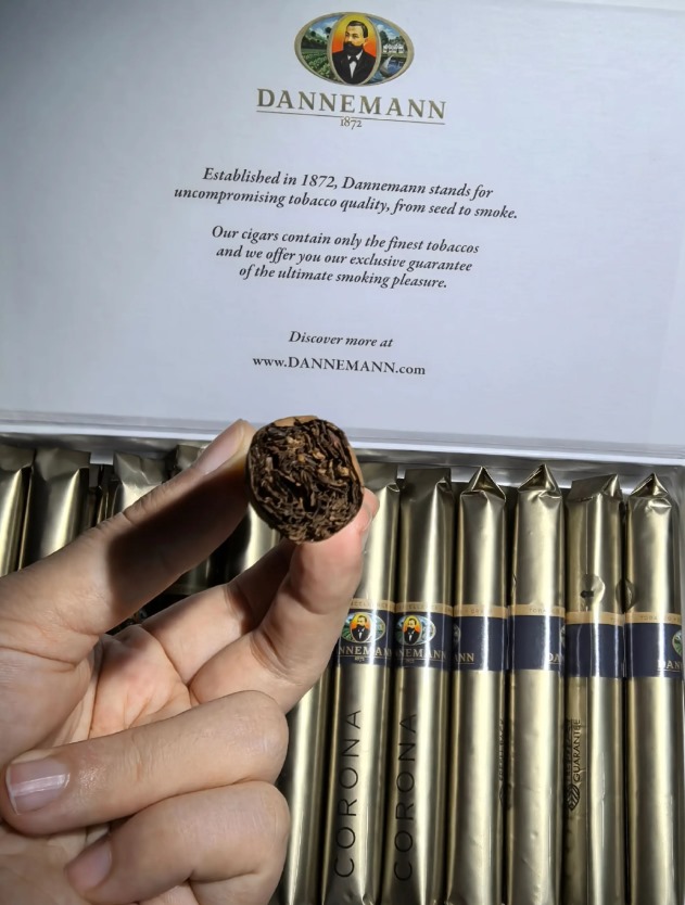 丹纳曼告朗拿(Corona):这是我常买的口粮款,25支装约1200元,单支143mm长度,环径42。口感柔顺,带咖啡香气,独立密封包装挺方便。个人觉得前段香气讨喜,但尾段略平淡。