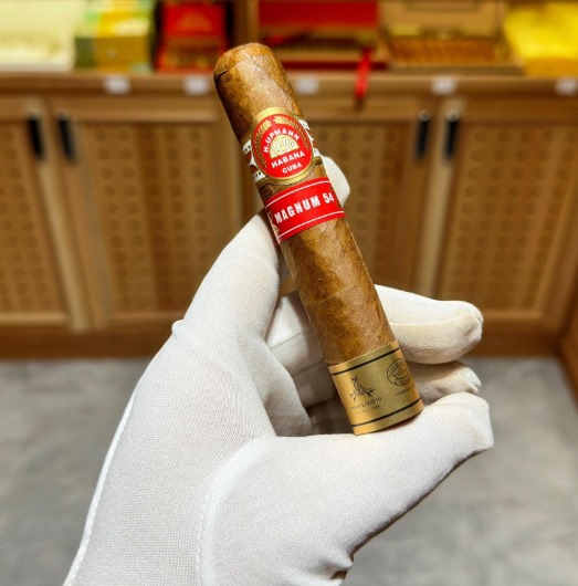 木盒以原木色为主,搭配黑色副色调,盒面印有金色乌普曼品牌标识及"Magnum 54"字样。茄衣为深棕色科罗拉多马杜罗,表面略带油光,叶脉明显但触感光滑。配备双环标,茄体粗壮饱满,卷制紧实,茄帽采用三重封顶工艺。