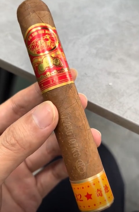 长城132奇迹,这款国产高端雪茄最近在圈内热度不小。一盒10支装,售价1200元,算下来每支120元,在国产雪茄里算是中高端定位。尺寸是长度130mm,环径55,属于宽丘吉尔型号。浓郁度中等偏上,燃烧时间50-60分钟,2021年在《雪茄杂志》盲品比赛中获得89分,实力不容小觑。今天这支养了段时间,茄衣颜色偏深,捏在手里很有派头。