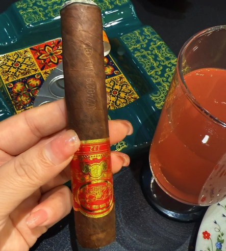 后段焦糖味强烈起来,豆味也更容易捕捉,甜味持续不断。烟气烫嘴时才结束,整体印象是烟气高级感十足,风味丰富全程杂味少。宽身丘吉尔尺寸需要充裕的时间和稳定环境来享用。