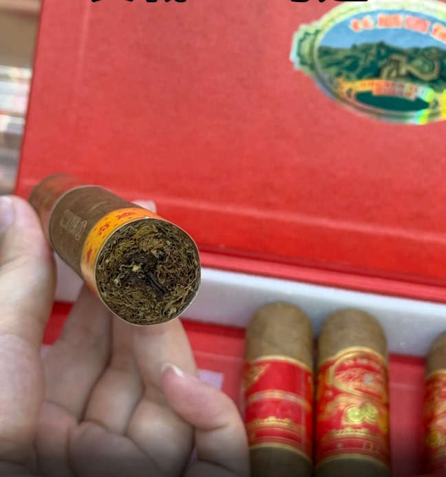 盒子设计:以红色为主色调,辅以五角星与工艺暗纹,展现时代与工匠精神。红金配色的主茄标与黄金副环,质感细腻。