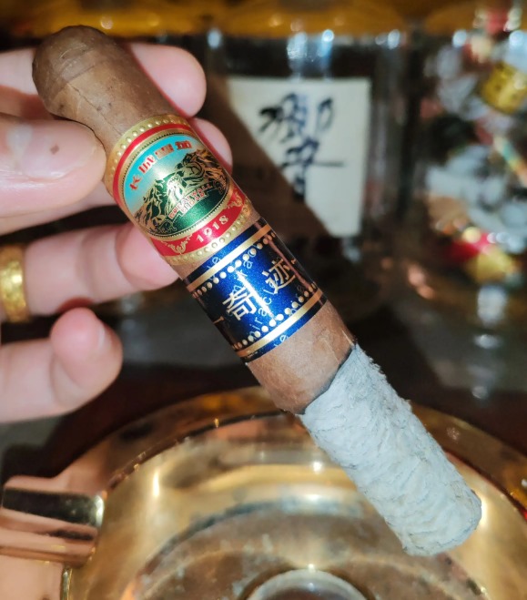 后段皮革香和轻微胡椒辛辣感出现,木质香持续,余味回甘干净,但偶有轻微焦油味。尼古丁积累适中,我没硬扛到底,掐得早了点。整体平衡,复杂度虽不如古巴茄,但糊米香特色鲜明。