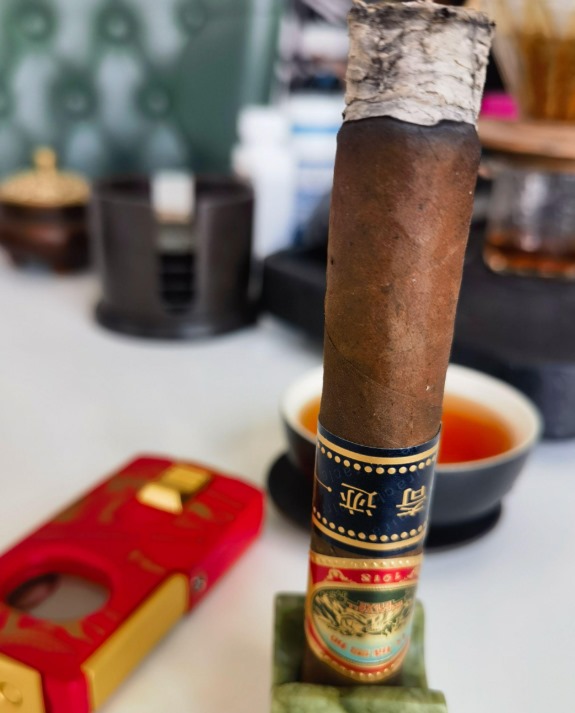 茄体饱满紧实,抽吸顺畅,燃烧均匀。茄灰洁白,结构紧密,持灰能力良好,适合慢节奏品吸。