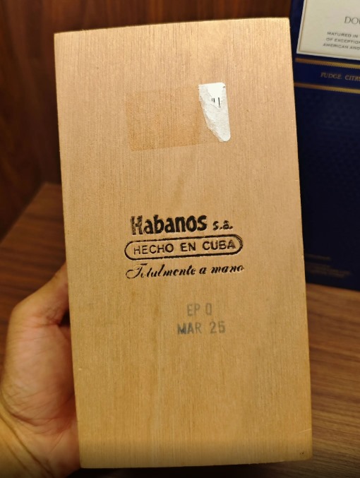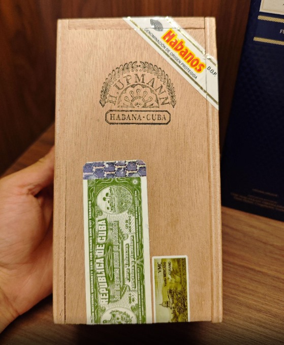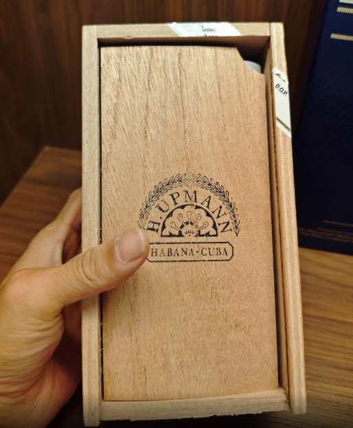 这款乌普曼玛瑙50可是古巴雪茄里的硬通货,2005年作为限量版出道,后来因为太受欢迎直接转正成常规款。一盒25支装价格8680元,算下来单支不到350元,性价比在古巴茄里算不错的。160mm长度配50环径的Double Robusto尺寸,握在手里分量感十足,用的是古巴Vuelta Abajo产区的陈年烟叶,手工卷制,浓郁度中等,主打木香、花香和果甜味。