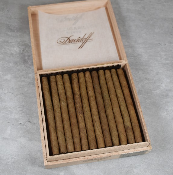 大卫杜夫迷你小雪茄(Mini Cigarillos Gold)产自多米尼加共和国,单盒50支,售价约1500元。尺寸为87毫米(约3.43英寸),环径20,燃烧时间约15分钟,属于浓郁度较低的轻柔型雪茄。该产品适合在时间有限的情况下快速享用,延续了大卫杜夫雪茄一贯的制作工艺与选材水准。