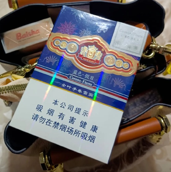 蓝色假日雪茄包装以深蓝色为主色调,搭配金色与红色线条,正面印有“蓝色假日”字样与烟花图案。盒内为5支装,部分版本内附雪松木片以提升香气。整条为5小盒共25支,适合收藏或日常携带。
