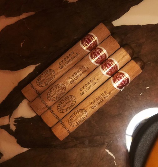 今天聊聊罗密欧雪松3号这款雪茄,它是罗密欧与朱丽叶家族里比较经典的一款,圈里人常叫它“雪松三号”。一盒25支装,价格6480元左右,算下来每支约259元。尺寸是长度129mm,环径42,属于小皇冠型号。燃烧时间30-45分钟,浓郁度中等偏轻柔,适合当短时口粮。1960年前就推出了,是古巴革命后的经典系列,雪松木片包裹是它的特色。
