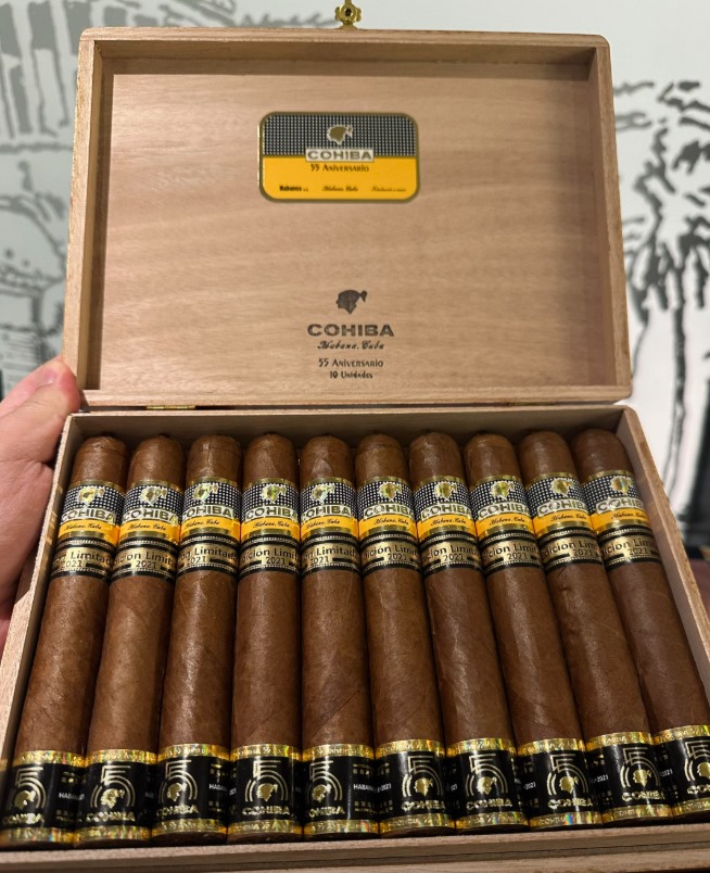 - 高希霸55周年纪念版(55 Aniversario EL 2021):尺寸166mm×57,纪念品牌55周年,浓郁的皮革与香料味。