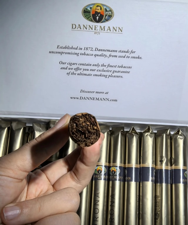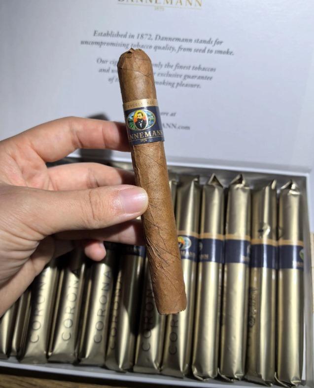 木盒造型简单,做工扎实胜过很多品牌。茄衣油亮,颜色深,但外观有点粗糙,有疙瘩和叶脉,茄帽看着像随便弄的。不过拿手里沉甸甸的,整体看着还行。