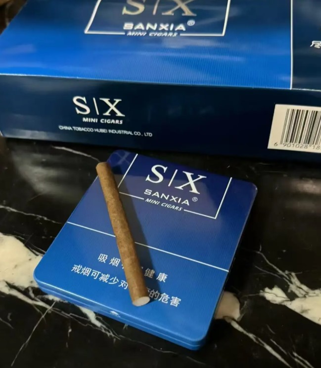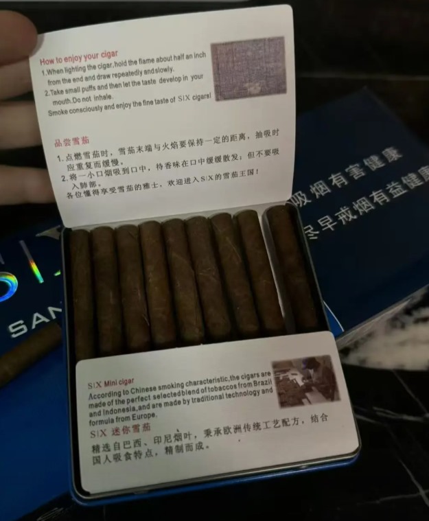 搞到这支黄鹤楼三峡MIX10,蓝色铁盒包装看着挺精致,一盒10支才22块钱,性价比没得说。尺寸是84mm长度,环径24.5,属于机制雪茄,焦油量10-13mg,劲儿不算大,适合刚入门的茄友尝尝鲜。