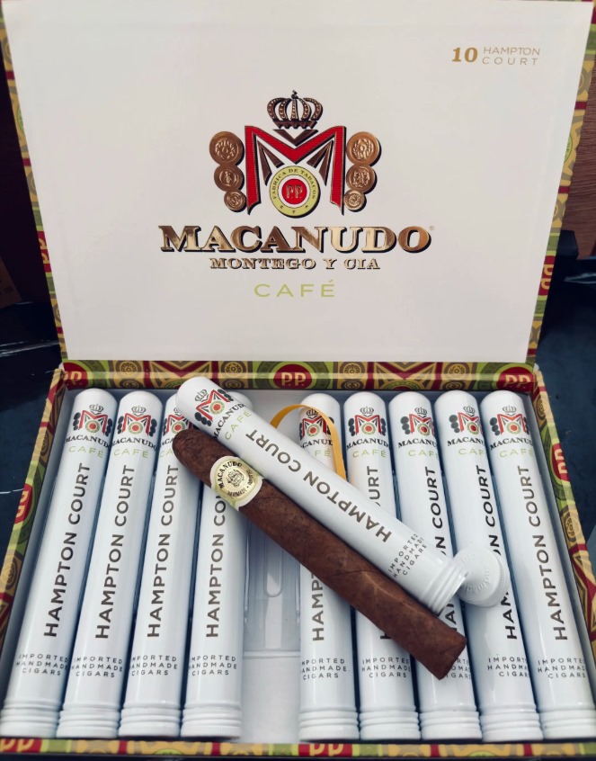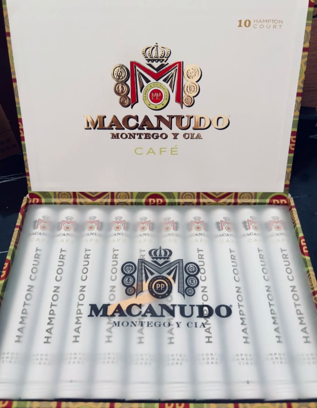 今天灰一根麦克纽杜咖啡皇室雪茄,这款雪茄是2023年推出的调味系列,主打咖啡风味。尺寸多样,包括Corona(152mm×44)、Toro(152mm×50)和Belicoso(152mm×54),这里以Corona为例。每盒20支木质礼盒装,手工卷制,茄衣用印尼Bezuki烟叶,茄芯茄套来自尼加拉瓜。铝管包装独立密封,盒身深色胡桃木纹理配金色浮雕,设计现代。