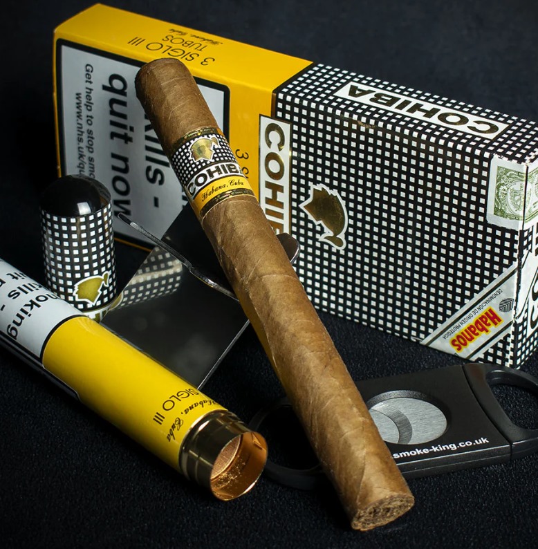 高希霸世纪三号(Siglo III Tubos)为经典长皇冠(Long Corona)规格,单支配备铝管包装,长度155mm,环径42(直径16.67mm),售价为17550元一盒。产自古巴哈瓦那著名的 El Laguito 工厂,采用 Vuelta Abajo 区顶级烟叶,经 Cohiba 独有的三次发酵工艺处理,烟气顺滑细腻,口感层次均衡,兼具可可、奶油、坚果与蜂蜜风味。