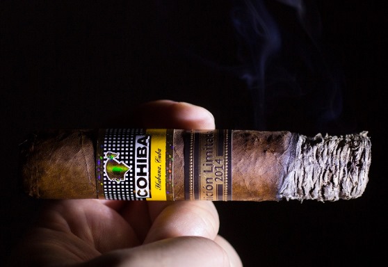 中段开始,高希霸2014限量版雪茄的花香和蜂蜜味浮现,混合泥土和皮革感。两支样本变酸,一支有苹果酒和可可粉回香,另一支直接发馊。烟气饱满度中等,但吸阻问题导致味道不稳定,偶尔有奶油感冒出。