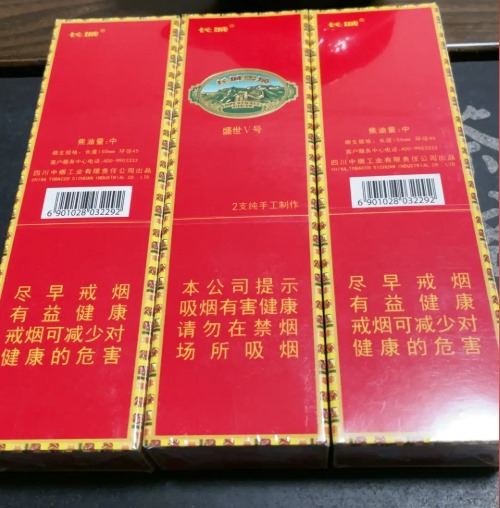 盛世5号雪茄使用印尼茄衣与茄套,搭配国产陈年茄芯(发酵周期18个月以上)。茄衣颜色呈金棕或深红褐色,油润光滑,叶脉细腻。茄体卷制紧实,平切头设计,切口整齐。茄标采用红黄双色设计,印有“Great Wall”和“盛世5号”字样,2019年起加入全息防伪标识。