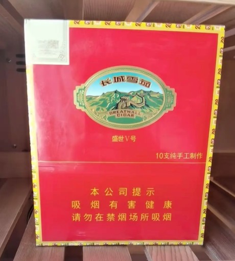 长城盛世5号雪茄是国产市场中颇具代表性的手工长芯雪茄,2013年推出后一直保持热销,价格为240元一盒。包装为红色纸盒,单支采用水晶管独立封装,确保运输安全。每盒包含5小盒×2支,总计10支。单支长度150mm,环径45,燃烧时长约在40-60分钟之间,浓郁度为中等,适合新手和日常品吸。