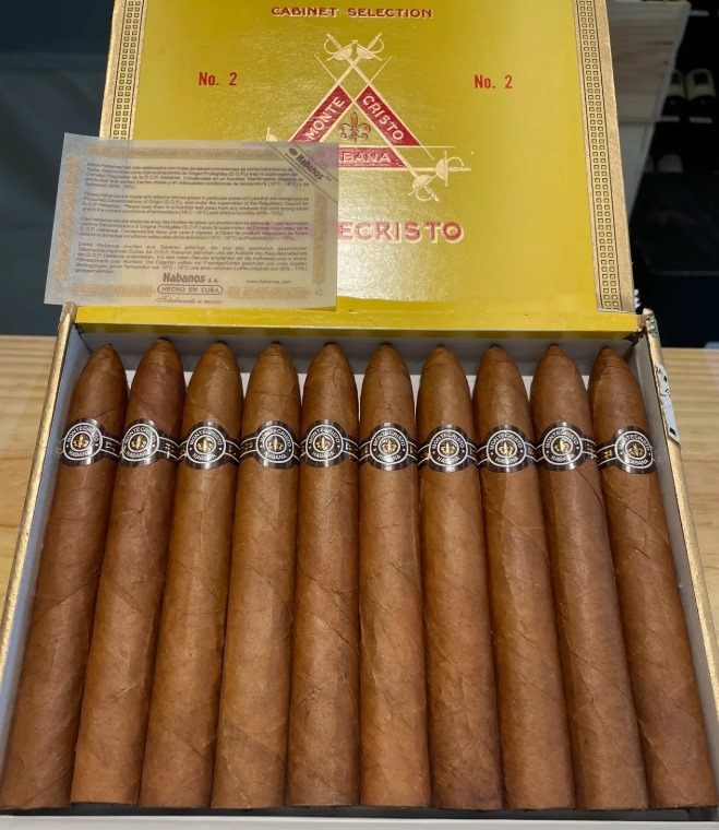 蒙特克里斯托是古巴老牌,这款2号鱼雷是标杆产品,一盒25支,价格在14000元左右,属于高端定位。尺寸是标准的鱼雷型,长度156mm(约6.125英寸),环径52,采用全古巴烟叶手工卷制,强度浓郁度4.5颗星,适合老茄客。